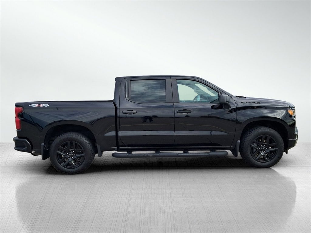 8-Speed Automatic, 4WD, Jet Black Cloth.Priced below KBB Fair Purchase Price! Odometer is 5884 miles below market average! Black 2023 Chevrolet Silverado 1500 Custom 4D Crew Cab 2.7L Turbo 8-Speed Automatic 4WD